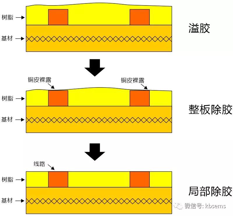 實際磨板除膠過程中,最糟糕的情況莫過于板面出現局部銅皮裸露時,還有大面積殘膠需要手工處理,顯然這樣做工作量極大。為了減少這樣的情況,填膠過程中就應該管控好溢膠厚度及其表面的均勻性,如優化刮膠工藝或填膠后靜置一段時間,待膠層平順后再進行后工序加工。