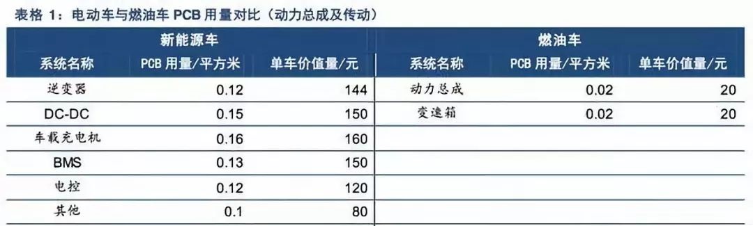 根據(jù)測(cè)算,僅在動(dòng)力總成及傳動(dòng)領(lǐng)域,電動(dòng)車上PCB的單車價(jià)值量就高達(dá)800元左右,是傳統(tǒng)車該領(lǐng)域PCB價(jià)值的20倍。