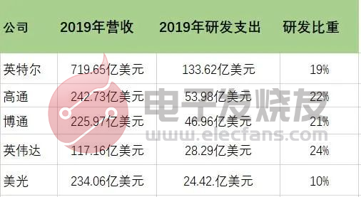 2019年美國重要芯片公司的研發投入統計表