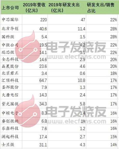 國內半導體上市公司研發投入對比表