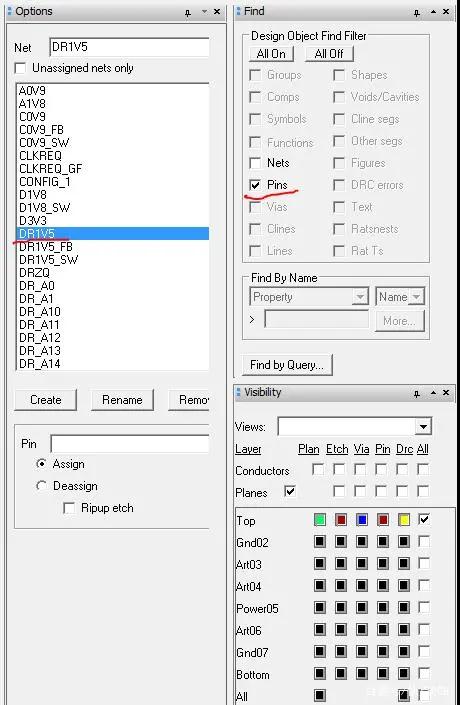 Option處選擇網絡,然后find處選擇Pins,之后點擊要修改網絡的Pin即可將原來的網絡修改為所選擇的網絡。
