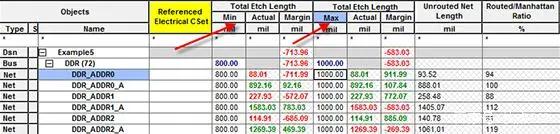 第三步,進入到右邊欄,對需要做等長的信號線,創建好Bus,在Total Etch Length中輸入最小值、最大值即可,如圖5-92所示,每一組的信號線都會跟這個對比產生相對應的誤差,按這個誤差做等長即可;