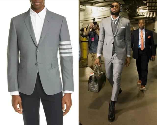 2018年NBA總決賽期間,詹姆斯就給每位隊友送了一套量身定制的Thom Browne,超級有型。不過因為定制的是Suit,所以沒有四道杠,沒有靈魂。