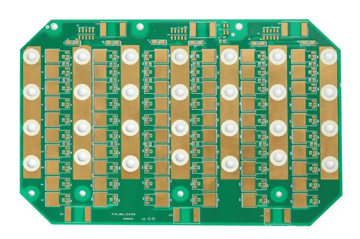 三、多層鋁基板 在高性能電源市場中,多層IMS PCB由多層導(dǎo)熱電介質(zhì)制成。這些結(jié)構(gòu)具有埋入電介質(zhì)中的一層或多層電路板,盲孔用作熱通孔或信號通路。雖然以單層設(shè)計傳輸熱量更昂貴,效率更低,但它們?yōu)楦鼜?fù)雜的設(shè)計提供了一種簡單有效的散熱解決方案。 四、通孔鋁基板 在最復(fù)雜的結(jié)構(gòu)中,一層鋁可以形成多層熱結(jié)構(gòu)的“芯”。在層壓之前,預(yù)先對鋁進(jìn)行電鍍和填充電介質(zhì)。熱材料或亞組件可以使用熱粘合材料層壓到鋁的兩側(cè)。一旦層壓,完成的組件類似于傳統(tǒng)的多層鋁基板通過鉆孔。電鍍通孔穿過鋁中的間隙,以保持電氣絕緣。或者,銅芯可以允許直接電連接以及絕緣通孔。