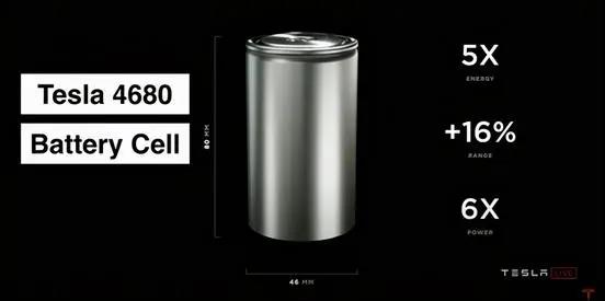 特斯拉4680電池發布于2020年9月舉辦的“電池日”活動上,這款電池的功率輸出提升了6倍,續航里程提升了16%,每千瓦時的成本下降了14%。