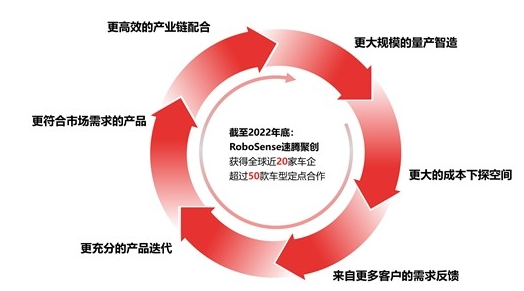 近年來,RoboSense憑借領先的產品技術實力、扎實的量產智造實力以及廣泛的產業鏈深度合作,率先建立起行業首屈一指的規模化優勢。RoboSense聯合創始人兼執行總裁邱純潮介紹道:“目前為止,RoboSense已累計與20多個客戶的50多款車型達成了量產合作。”