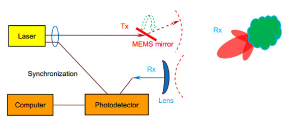 從工作原理上來講,激光雷達和毫米波雷達基本類似,都是利用回波成像來構(gòu)顯被探測物體的,就相當于人類用雙眼探知而蝙蝠是依靠超聲波探知的區(qū)別。 激光雷達是一種利用光波進行測量的主動探測方式。主動探測方式是指探測系統(tǒng)通過接收自身發(fā)出的信號回波來進行測量,區(qū)別于例如攝像機等通過接收環(huán)境光獲取信號的被動探測方式。激光雷達通過測量激光從發(fā)出經(jīng)障礙物反射到被傳感器接收所經(jīng)歷的時間,來計算障礙物的距離。
