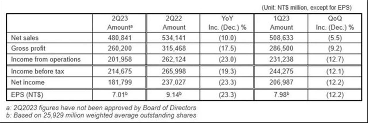 臺積電第二季度營收下滑10%(以美元計下滑13.7%),凈利潤同比下跌23%、環比下跌12.2%。不但為4年來首個季度盈利衰退,而且第一季度已經不利的局面,變得更嚴重了。