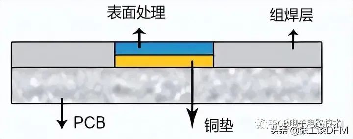 PCB 表面處理是 PCB 制造和組裝過程中最重要的步驟,具有兩個主要功能,一個是保護裸露的銅電路,另一個是在焊接時提供可焊表面元件到 PCB。如下圖所示,表面處理位于 PCB 的最外層,位于銅層之上,起到銅“涂層”的作用。