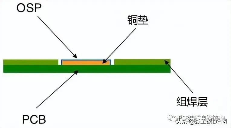 OSP(有機可焊性防腐劑)或抗銹蝕劑通常使用傳送帶工藝在暴露的銅上涂上一層非常薄的材料保護層,從而保護銅表面免受氧化。