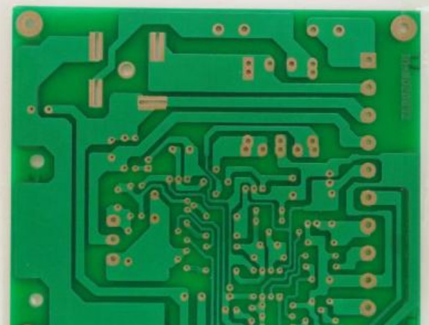 因為單面板在設計線路上有許多嚴格的限制(因為只有一面,布線間不能交叉而必須繞獨自的路徑),所以只有早期的電路才使用這類的板子。如圖: