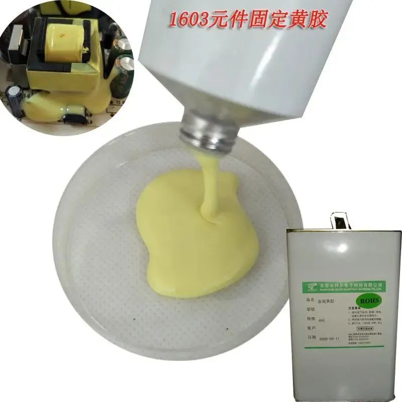 電路板所用的黃膠是一種水劑型粘合劑,有一種刺激性氣味,是一種柔軟性自粘結的凝膠狀物,有優良的絕緣,防潮,防震和導熱性能,使電子元器件在苛刻條件下安全運行。