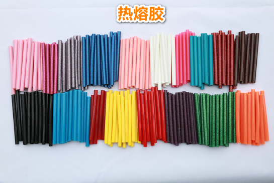 熱熔膠條是以乙烯-醋酸乙烯聚合物(EVA)為主要材料,加入改性松香樹脂或石油樹脂與其它成份配成的固體型粘合劑,是一種可塑性的無毒無味的綠色環保膠粘劑,在一定溫度范圍內熱熔膠的物理狀態隨溫度變化而變化,而化學特性保持不變。完全不含水或溶劑,具有快速粘合、強度高、耐老化、無毒害、熱穩定性好,膠膜韌性等特點。