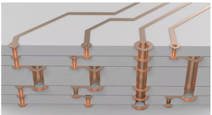 只有一種過孔,從第一層打到最后一層。不管是外部的線路還是內部的線路,孔都是打穿的,叫做通孔板。