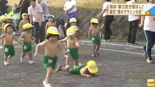 不過PCB廠小編早有耳聞,日本人從小就要打赤膊進行抗寒訓練,喏,這一群幼兒園的小屁孩赤膊上陣在跑步了。風一般的孩子可能就是這樣從小練成的,妹子們的抗寒特異功能也許也是從娃娃時期就形成了。