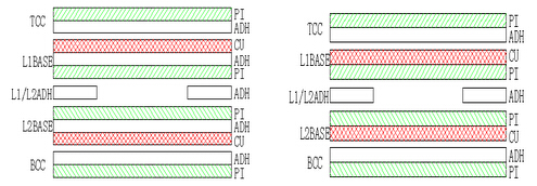 疊構(gòu): ①有膠基材 ②無(wú)膠基材