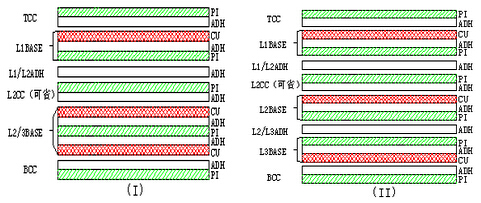 疊構(gòu):①有膠基材(圖略) ②無(wú)膠基材(Shadow兩遍,圖略)