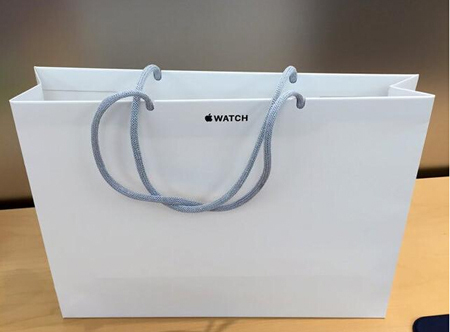 從4月15日開始,蘋果將使用由80%回收材料制成的紙質購物袋,并且提供中號和大號兩種尺寸。當顧客在購買產品后,需要詢問顧客是否需要購物袋。而在此之前,蘋果提供的是上圖這樣的塑料袋。