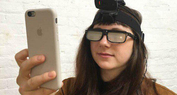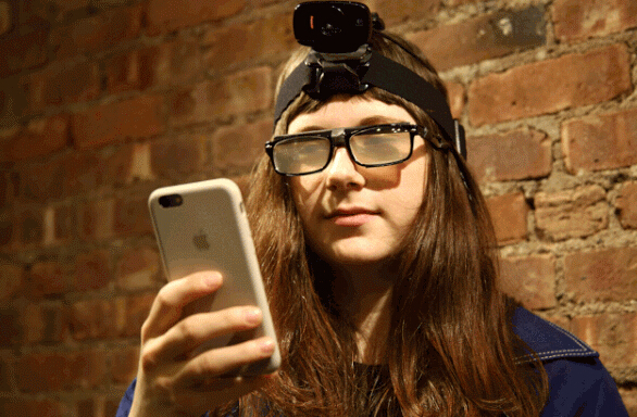 它的眼鏡片采用不透明塑料材質,在通電狀態下透明。這款眼鏡要配合專屬微型攝像頭使用,攝像頭戴在頭上,用來掃描用戶正在面對的場景。一旦發現用戶在盯著手機屏幕,設備會發出信號切斷電源供應,讓鏡片變得模糊。