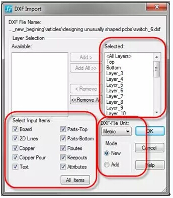 圖 5:PCB設(shè)計(jì)工具(如這里介紹的PADS)需要能夠使用DXF格式控制所需的各種參數(shù)。