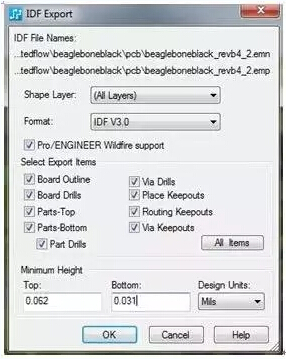 系統(tǒng)需要能夠以與DXF參數(shù)設(shè)置類(lèi)似的方式,來(lái)控制IDF文件中將包含的內(nèi)容,如圖6中所示。如果某些元器件沒(méi)有高度信息,IDF導(dǎo)出能夠在創(chuàng)建過(guò)程中添加缺少的信息。