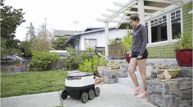 這款機器人會根據(jù)指定的路線到達用戶所在地。在此過程中,機器人過馬路,走小路,看似非常穩(wěn)重。