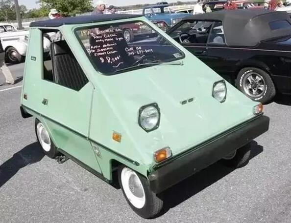 這款Bond Bug是英國Bond汽車有限公司在1970年~74年間生產的一款“小三輪兒”,與前文那款Citicar頗有幾分神似。