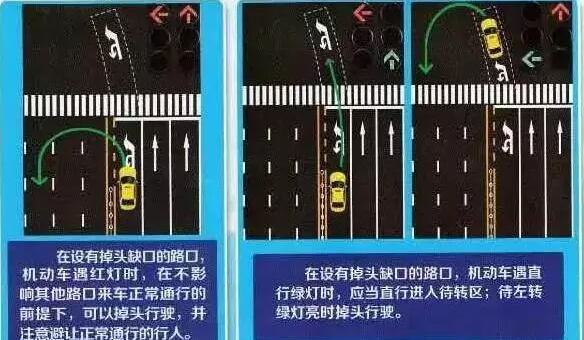 路口有左轉待行區時,如果停止線左側是虛線,可以提前掉頭不用去待轉區。如果是直行燈是綠燈,則要進入待轉區等候綠燈亮起才能左轉。