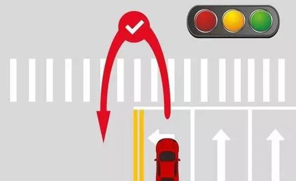 在只有“餅狀” 的紅綠燈面前,如果紅綠燈沒有箭頭指示的情況下,可以提前進行掉頭。